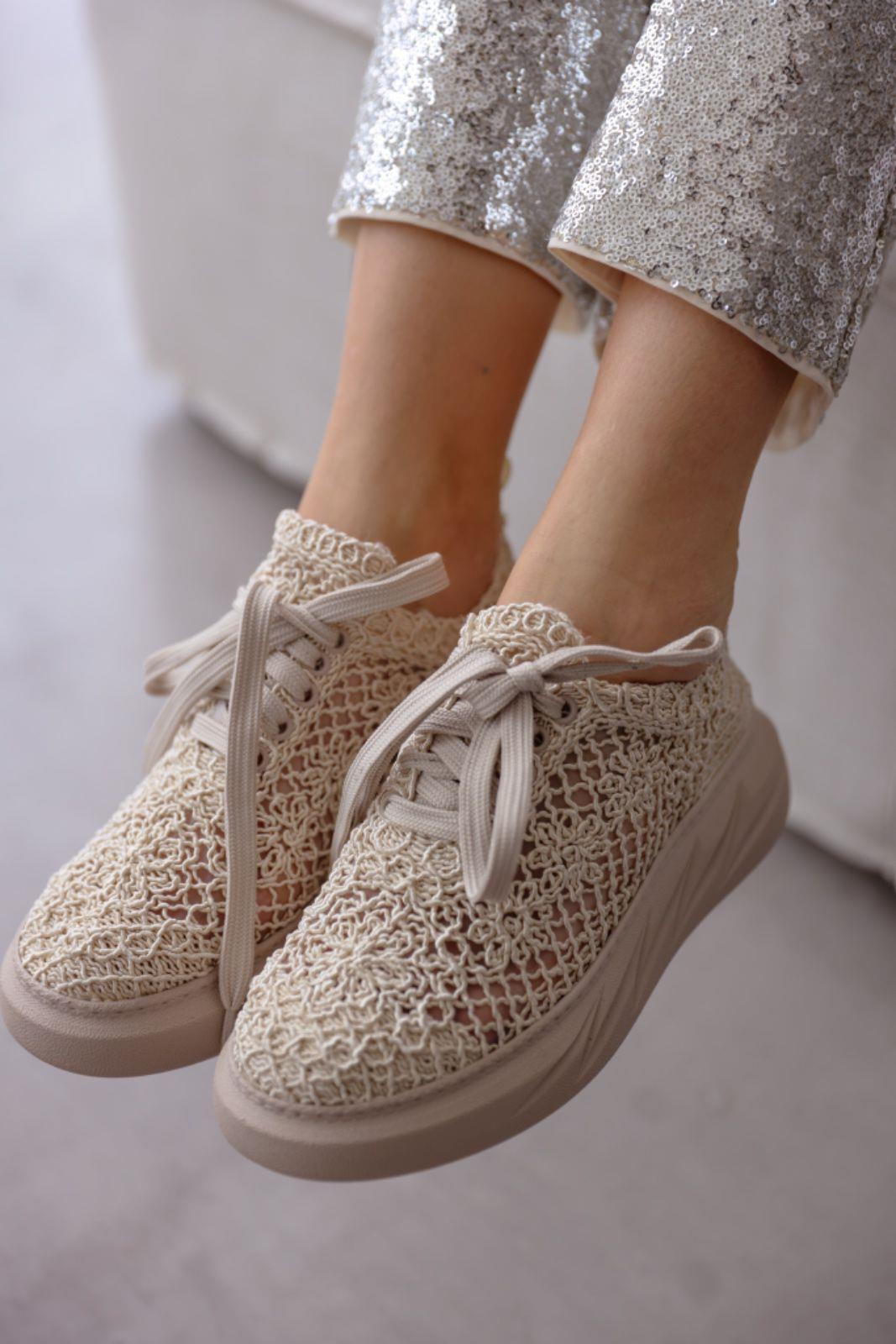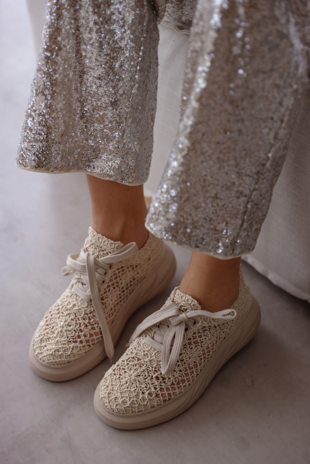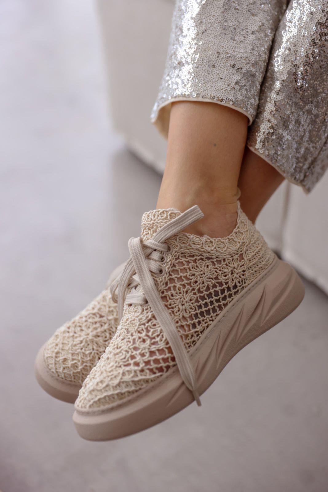 Oliwia حذاء رياضي نسائي بتفاصيل محبوكة - بيج